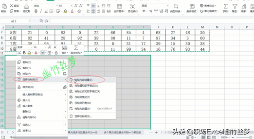 4、单击鼠标右键选择选择性粘贴—粘贴内容转置,即可将表格行列进行转置。