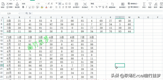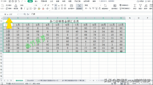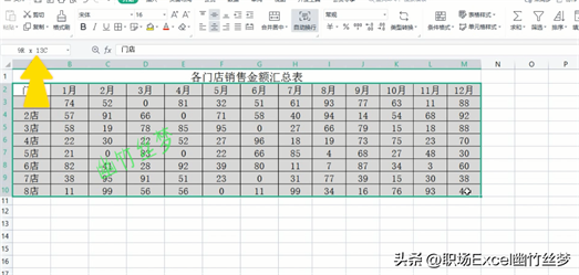 公式法第一步方法和选择性粘贴方法第一步操作基本一致,同样是单击鼠标左键选中整个表格然后看左上角名称框里面显示所选表格是几行几列。