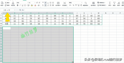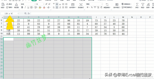 3、单击鼠标左键在空白单元格选择13行9列,因为需要行列倒置,所以需要跟原表格9行13列选择行列倒置的区域,同样可以看界面左上角的名称框显示方便选择空白区域。