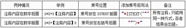 注意:一旦根据注释内容和数字的关系设置好公式后,就只能按照此位置进行注释,否则公式的计算会出现错误。
