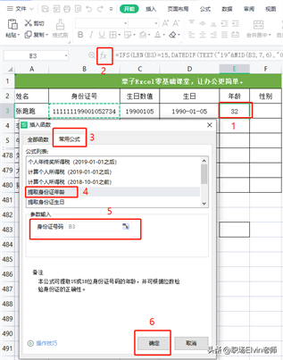 方法三:利用Excel自带函数【提取身份证年龄】,一键提取年龄