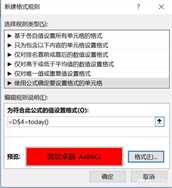 3、设置进度日期表头的时间为当天的填充红色。选中D4:U4→【开始】→【条件格式】→【新建规则】→【条件格式】,在【新建格式规则】对话框中,选择【使用公式确定要设置格式的单元格】,在【为符合此公式的值设置格式】框中输入公式=D$4=today()(由于D4:U4区间都在第4行,所以D$4锁定了行),再点下面的格式,设置满足条件的单元格为红色填充。