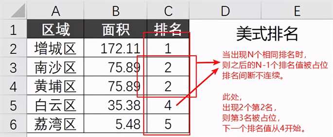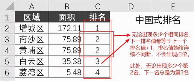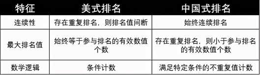 如果我们从三个方面对比中国式排名和美式排名,可能会让各位读者更为清楚二者的区别: