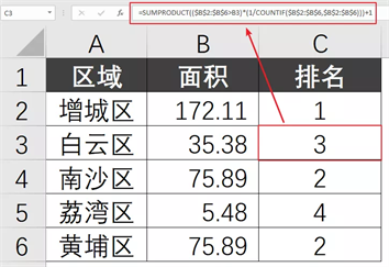 也就是说,有「1」个数≥B2,则「1」为对应排名,有「2」个数≥B2,则排名为「2」,以此类推。
