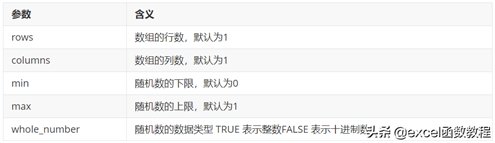 3. RANDARRAY([rows],[columns],[min],[max],[whole_number])