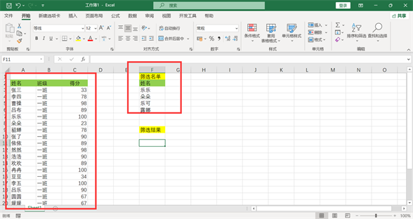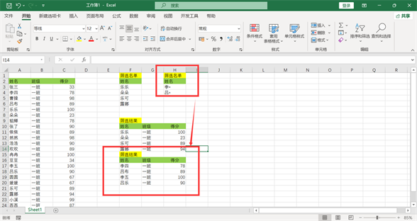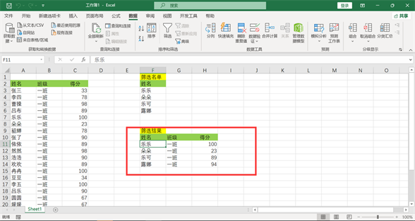 点击确定后,筛选名单上的多个姓名资料单独筛选出来存放到目标位置。