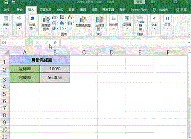 源数据为两行数据,其中第一行为达标率1,即100%,第二行为实际完成率。