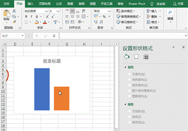 选择柱形,右侧“设置数据系列格式”设置框中设置系列选项中系列重叠为100%、间隙宽度为0%,调整图表大小;