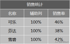 原始数据为可乐、芬达、雪碧三种饮料的销售统计,其中第1列数据为辅助列,均为100%,第2列数据为实际的销售百分比。