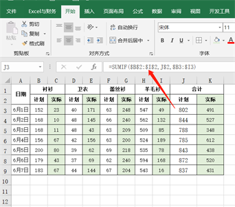 表格中需要分别把计划销量和实际销量进行求和,我们可以用一个个加起来,也可以用下面的公式: