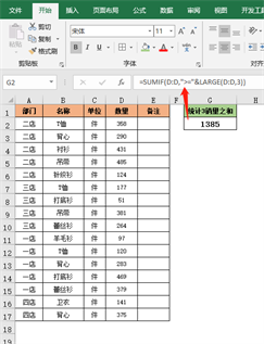 公式:=SUMIF(D:D,”>=”&LARGE(D:D,3))
