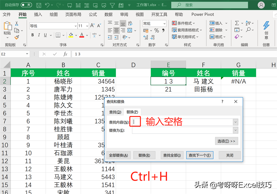按【Ctrl H】,弹出【查找和替换】对话框,在查找内容中【输入空格】,在替换为重不输入任何内容,点击【全部替换】。