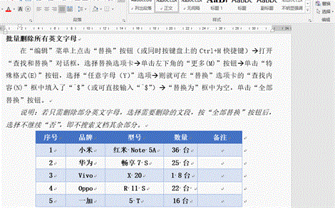 说明:若只需删除部分英文字母,选择需要删除的文段,按“全部替换”按钮后,选择不继续“否”,即不搜索文档其余部分。