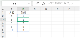 1.企业车辆调度:若每辆车最多可搭载5人,要依据出行总人数计算所需车辆数量,可采用公式=CEILING(A2:A6/5,1),先通过人数除以5得出大致的用车数量,再将不足一辆车的部分向上舍入为整数;也可以使用=CEILING(A2:A6,5)/5,先把人数舍入为5的倍数,再除以5得到最终的车辆数。