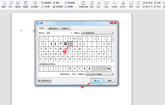 【插入】-【符号】-【其它符号】,然后在符号对话框中字体选择“宋体”,字迹选择“CJK符号和标点”,然后在下面的找到六角括号插入即可