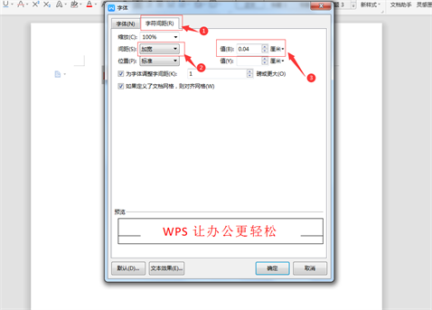 3、调整文字大小和颜色(红色),文字居中显示,然后选择文字-右键【字体】-在弹出的对话框中【字符间距】-【间距】加宽-值为0.04厘米