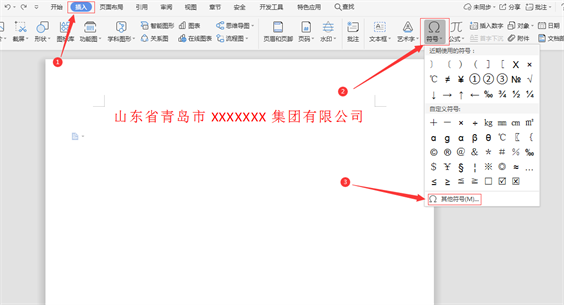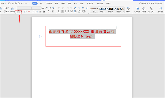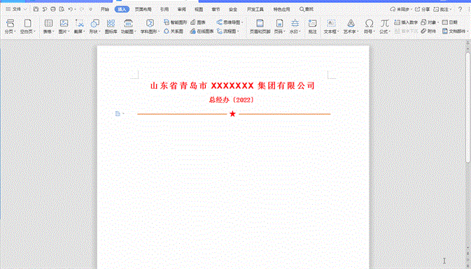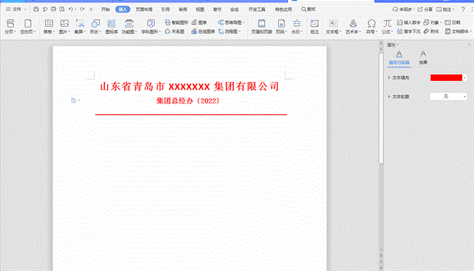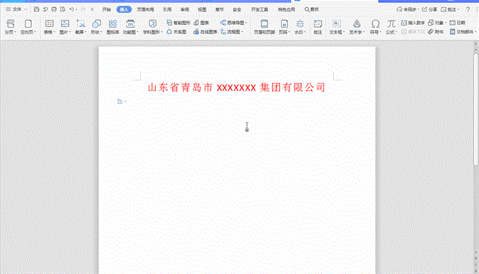 2、输入红头文件名称“山东省青岛市XXXXXXX集团有限公司”