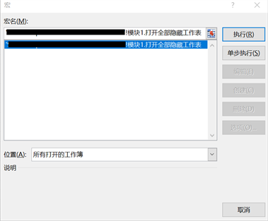 4、操作完成后,关闭VBA界面,回到Excel界面,利用快捷键Alt+F8,打开宏执行对话框,找到对应命令,点击执行,即可完成。