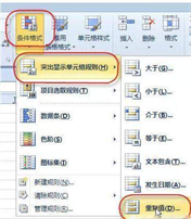 第2步:按CTRL键同时选取两列区域,开始 – 条件格式- 突出显示单元格规则 – 重复值。
