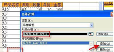 步骤2:接上一步别关窗口,选取库存表的A2:C10(第1列要包括对比的产品,最后一列是要对比的数量),再点“添加”按钮就会把该区域添加到所有引用位置里.