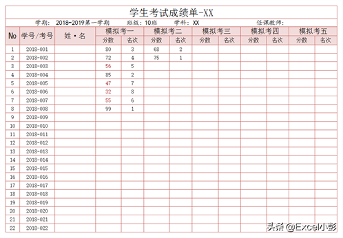 下面,咱们给大家介绍两款自己设计的学生考试成绩管理登记表,希望可以在炎热的夏天给各位老师带来一丝丝的清新与凉爽。