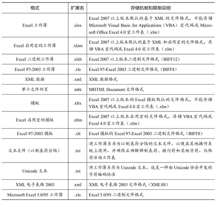 最佳答案1、模板文件(.xltx/xltm)模板是用来创建具有相同特色的工作簿或者工作表的模型,一般应用在图表中。我们可以将图表保存为模板,下回可以直接套用,省时省力。其文件扩展 名为“.xltm”。2、启用宏的工作簿启用宏的工作簿的扩展名为“.xlsm”。这是2007版本之后的excel特有的文件格式,一......
