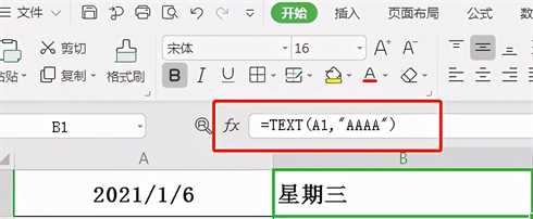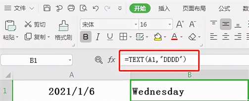 函数公式:=TEXT(A1,”DDDD”)