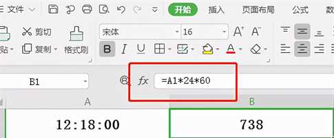 函数公式:=A1*24*60