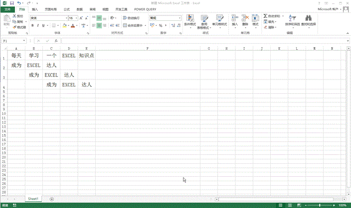 在EXCEL2016的版本中,该函数进行了升级,简化为CONCAT函数,这个函数更加高级,参数之间不用逗号分开,直接选中就可以了,例如上面的例子中可以直接输入=CONCAT(A1:E1)就搞定了。