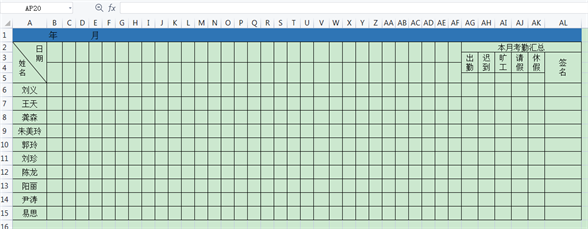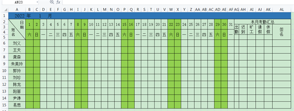 动态考勤表格就做好了,切换上面的年、月,下面的日期就会变化了