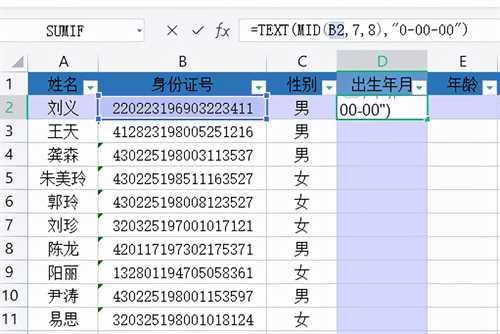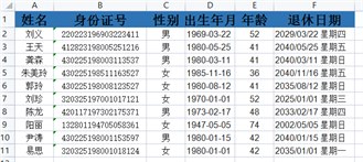 最佳答案一、根据身份证号提取相关信息的操作1、计算性别(C列)=IF(MOD(MID(B2,17,1),2),”男”,”女”)2、出生年月(D列)=TEXT(MID(B2,7,8),”0-00-00″)3、年龄公式(E列)=DATEDI......