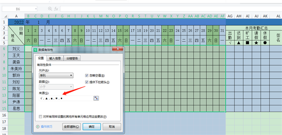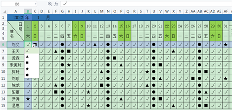圈选工作表–数据–有效性–允许–序列–来源–√,▲,■,★,●