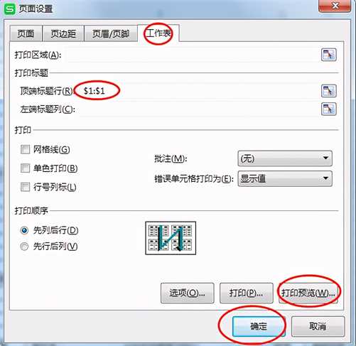 方法:页面布局——打印标题——工作表——顶端标题行,手动输入“$1:$1”最后点击确定,然后打印预览看看效果吧!