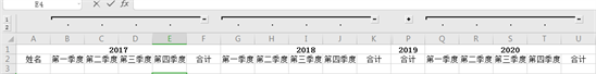 方法:第一步:选中B:E列,点击“数据”——“创建组”,即设置好了2017年度;