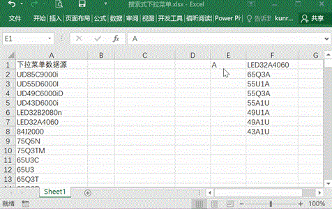 通过在辅助单元格E1输入关键词,然后将下拉菜单的数据源进行缩减,从中选择你需要的。
