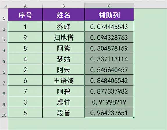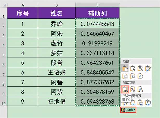 RAND函数返回的随机数在我们编辑表格的过程中会自动刷新,粘贴为“值”后可以清除函数公式,防止C列中生成的随机数在表格编辑过程中继续刷新。