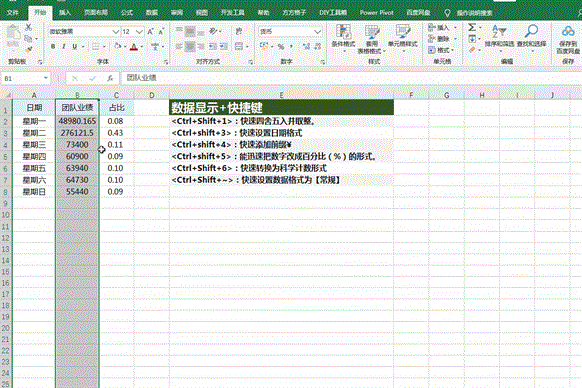 (5)<Ctrl+Shift+6>:快速转换为科学计数形式