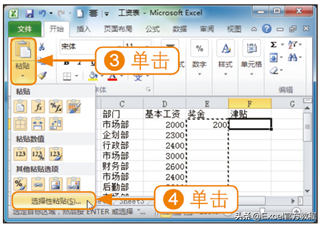 ④在弹出的下拉列表中单击“选择性粘贴”命令,打开“选择性粘贴”对话框,如下图二所示。