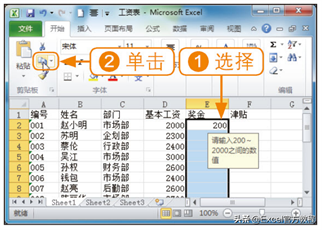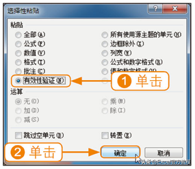 最佳答案操作方法和步骤:步骤01 ①选择包含要复制的数据有效性规则的单元格;②单击“开始”选项卡下的“剪贴板”工具组中“复制”按钮,如下图所示;③单击“粘贴”按钮;④在弹出的下拉列表中单击“选择性粘贴”命令,打开“选择性粘贴”对话框,如下图二所示。步骤02 在“选择性粘贴”对话框中①在“粘贴”选项组中单击“......