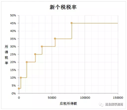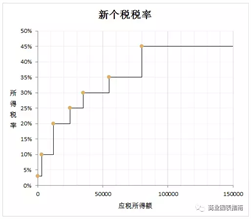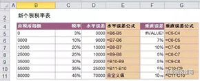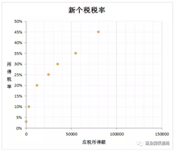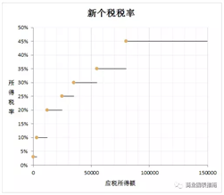 除了带散点的折线图,我们还可以用散点图加误差线来进行步进图的制作。下面我们用新个税方案的税率表作为数据源做一下。