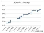 例如,步进图可以显示利率或邮费等随时间变化的情况。下面这张反映美国基准邮费的图表: