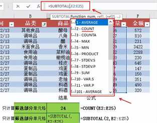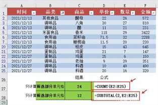 如下图所示,我们输入公式:=SUBTOTAL(2,E2:E25)