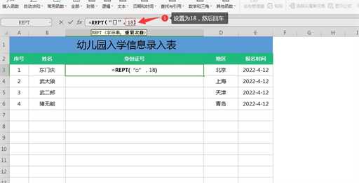 最佳答案首先打开excel文档,下面是一个幼儿园入学信息表格,需要填写身份证信息,需要显示打印出填写身份证号的小方格。1、在单元格里输入函数=REPT(“□”,18),前面的正方形可以在QQ输入法下输入“zheng fang xing”选择第五个,然后后面数字填写18,最后回车2、这......