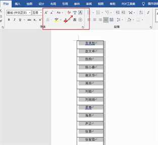 随后在word文档中再次全选粘贴过来的数据,点击开始工具栏下的显示拼音小图标,如上图中箭头所指。