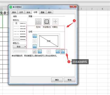 2、点击右键,选择“设置单元格格式”,在单元格格式对话框中点击“边框”,在边框文本那里点击右下角的添加斜线按钮即可