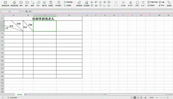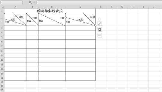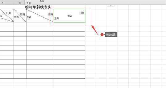 3、添加“日期”,“姓名”,“工号”左右位置到合适位置,如下图: