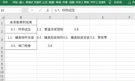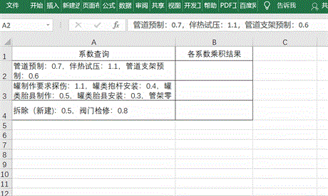 在单元格中输入公式=PRODUCT(IFERROR(–(TRIM(MID(SUBSTITUTE(SUBSTITUTE($A2,”:”,”,”),”,”,REPT(” “,99)),1+(COLUMN($A:$H)-1)*99,99))),1)),之后按Ctrl+Shift+Ente组合键即可获取。