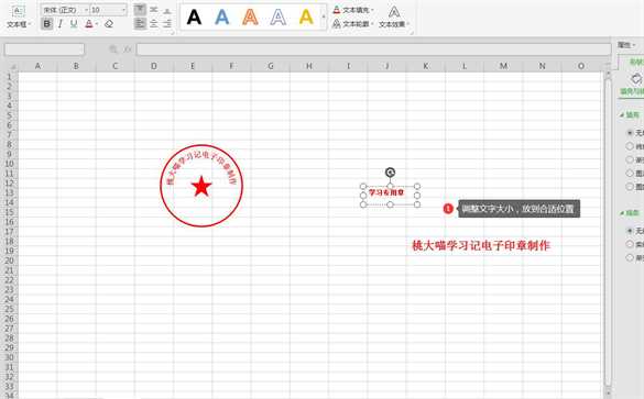 1、在刚才复制的文本中,输入“学习专用章”,具体根据实际情况确定,调整大小后,放到合适位置,如下图