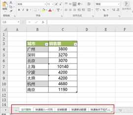 首先,我们可以选择Sheet1工作表(上图中的“空行删除”工作表),按住shift键,再鼠标点击Sheet5工作表(上图中的“快速制定下拉菜单”工作表),这样就相当于将五个工作表全部选择完毕。