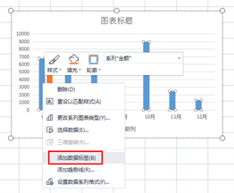 4、选中柱形图,鼠标右键【添加数据标签】;